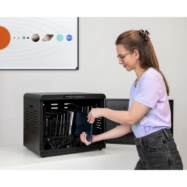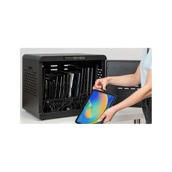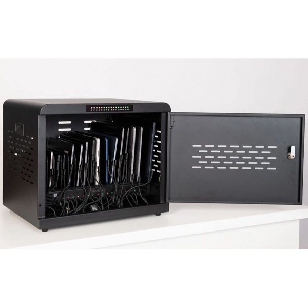Ideal for UK businesses in retail, hospitality, healthcare, and education sectors, this cabinet combines enterprise-grade security with efficient charging. The steel construction features a tamper-proof locking mechanism and optional RFID access control (sold separately). Integrated cable management and ventilation ensure safe overnight charging for multiple device fleets.