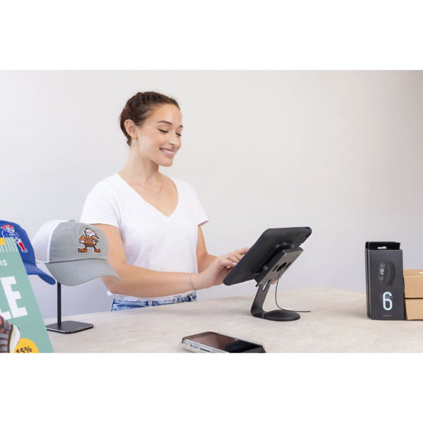 Crafted from high-quality materials, this stand ensures professional durability with the trusted Maclocks/Compulocks brand guarantee. Integrated wireless charging eliminates the need for cables, ensuring a clutter-free setup and uninterrupted device usage. The stand’s compact design facilitates quick and hassle-free installation, making it an ideal choice for busy commercial spaces.