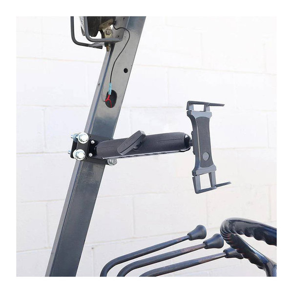 Compatible with 7"-11" tablets (including iPad, Samsung Tab, and Microsoft Surface), the forklift mount offers tool-free installation with universal clamp fittings for quick deployment across fleets. The reinforced aluminum construction withstands industrial use while maintaining 360° adjustability for optimal operator visibility.